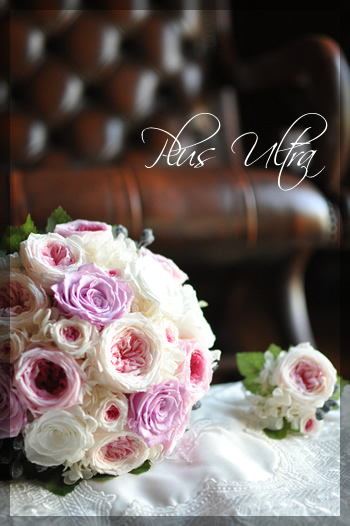 プリザーブドフラワーのウェディングブーケと、ヘッドパーツを制作されました。