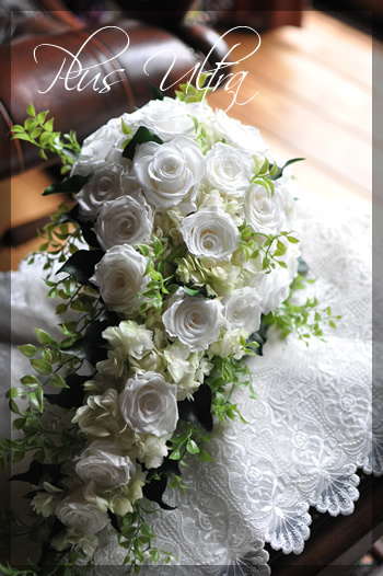 王道デザイン、純白のプリザ。素敵に仕上げて頂きました。