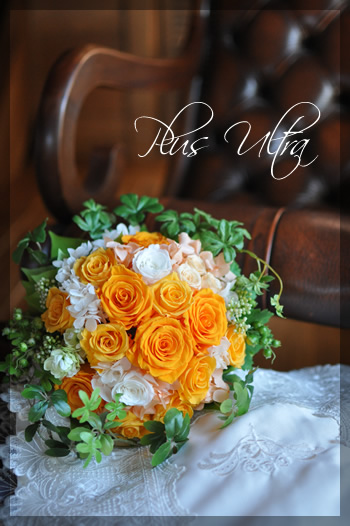 プリザで作る。オレンジのウェディングブーケ。
