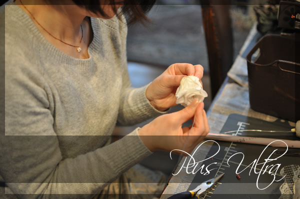 黙々と一輪一輪心を込めて。最初ワイヤーの扱いが大変そうでしたが、数をこなす度お上手に。
