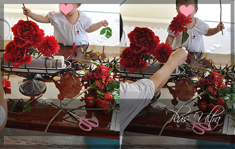 高級な造花をたくさん使った、大きな作品が出来ました。