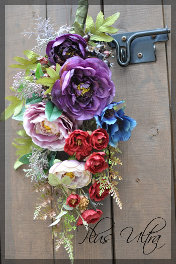 造花のリースや、スワッグを玄関に飾ってみませんか。
