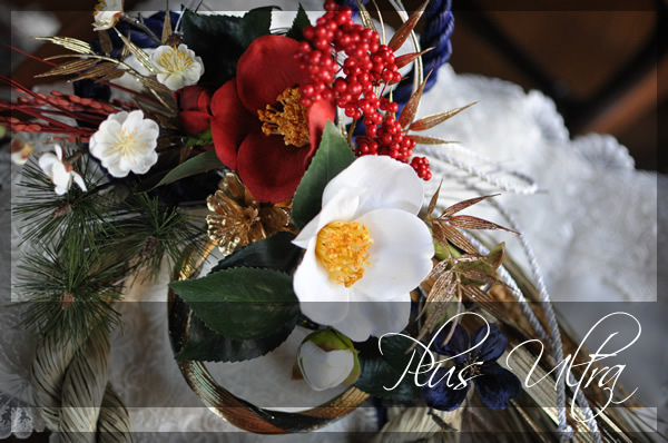 紅白の椿や、梅の造花。