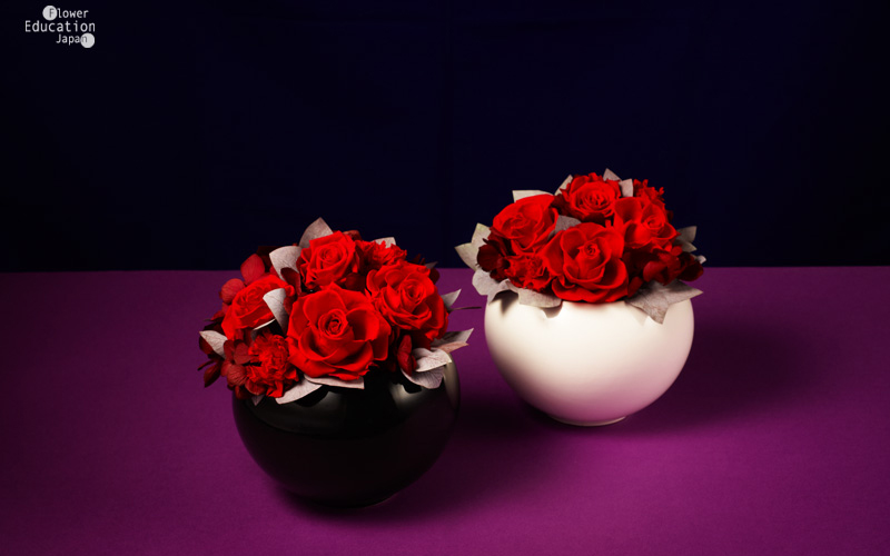 プリザーブドフラワー 仏花コース。フューネラルフラワーを製作する上での専門知識のほか、洗練された“モダンなデザイン”も学ぶことができます。…