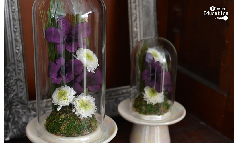 プリザーブドフラワー 仏花コース。フューネラルフラワーを製作する上での専門知識のほか、洗練された“モダンなデザイン”も学ぶことができます。…