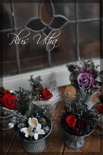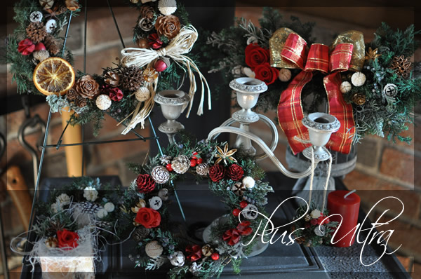 クリスマスカラーの緑・赤・白を使った王道リースを見本として制作させて頂きましたが、サロンには色々な花材がございますので、オリジナルリースを作ってください。